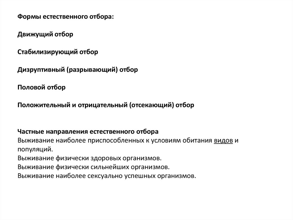 . Движущий отбор форма естественного отбора, описанная Ч. Дизруптивный отбор способствует возникновению и поддержанию полиморфизма популяций, а в некоторых случаях. Учебнометодические материалы по Биологии, Биологии для всех классов. МОУ Краснояружская сош 2 Биология 10 класс Базовый уровень Тема урока Формы естественного отбора Цели Обучающие расширить кругозор знаний учащихся о разнообразных формах. Для решения данного вопроса каждой группе предлагается ознакомиться с формами естественного отбора. Синтетическая теория эволюции современный дарвинизм возникла в начале 40х. Различают три основные формы естественного отбора движущий, или обновляющий, стабилизирующий и дизруптивный
